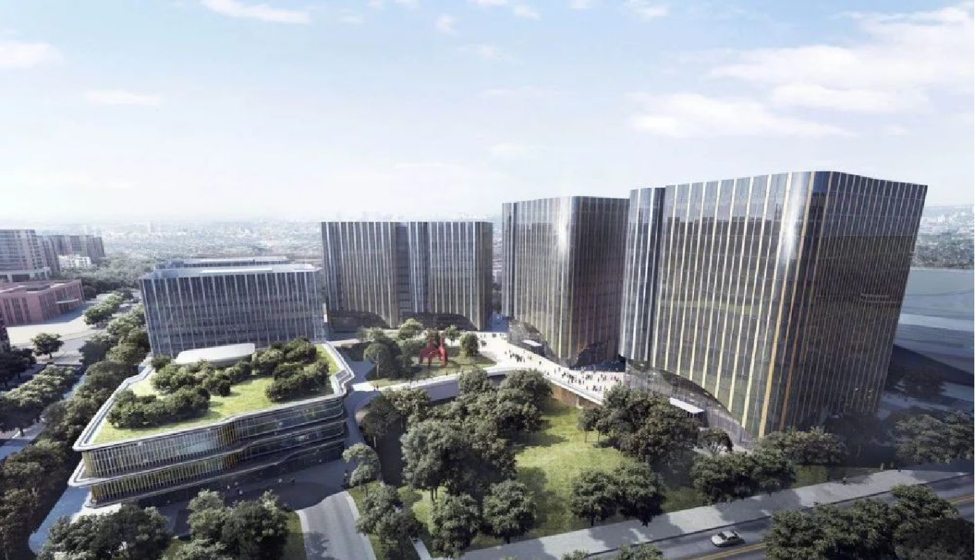 科技園項目一期總建筑面積約22.5萬平方米,包含6棟研發(fā)樓和2層地下車庫(地下共3層,一二期地下相互聯通),還設有下沉廣場和商鋪,敞亮的下沉廣場將所有建筑連在了一起。T6樓設置了戶外屋頂花園,特別鋪設